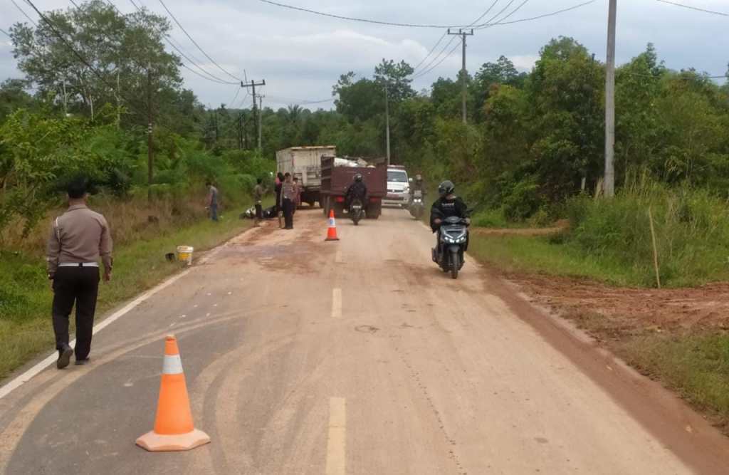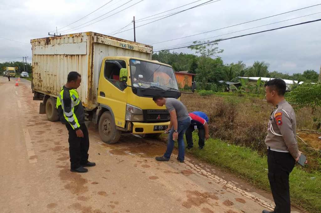 kemudian mengalami laka lantas dengan Mobil Mitsubishi Truck Box warna Kuning yang dikemudikan sdr MUHAMMAD DINO FARLINDO yang melaju dari arah yang sama atau sebelumnya melaju di belakang Sepeda Motor Honda Scoopy warna Coklat Hitam tanpa No.Pol yg dikendarai sdri KARTINA. Akibat kecelakaan lalu lintas tersebut terdapat korban jiwa dan kerusakan benda.